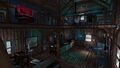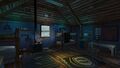 The second floor sometimes features a corpse that may spawn at the top of the stairs, a wood burning stove, two bunk beds, a dresser, a shelf, a cupboard, a table, and chair. Near the desk upstairs is a note left behind.