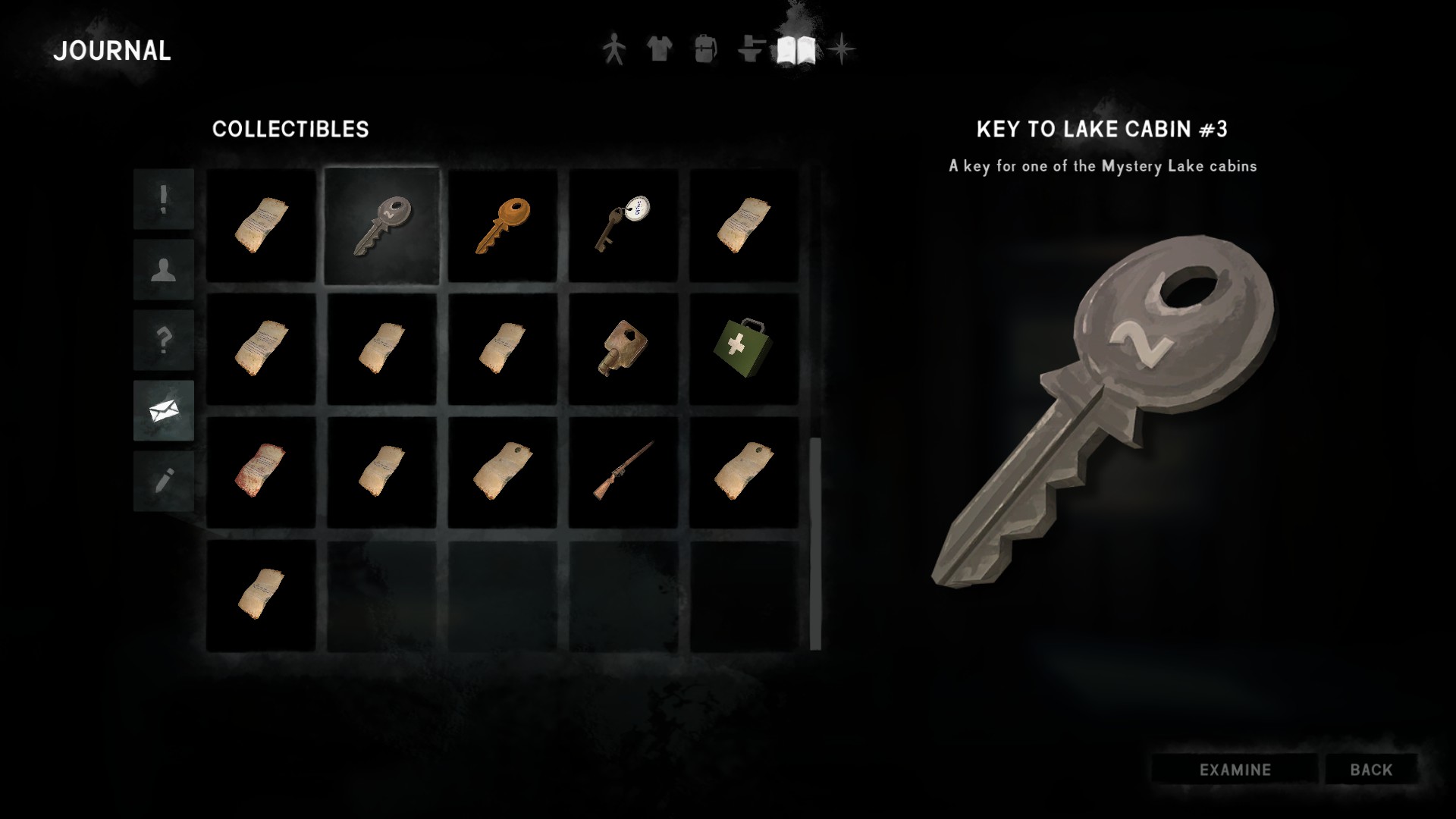 The Collectibles screen in the Journal.