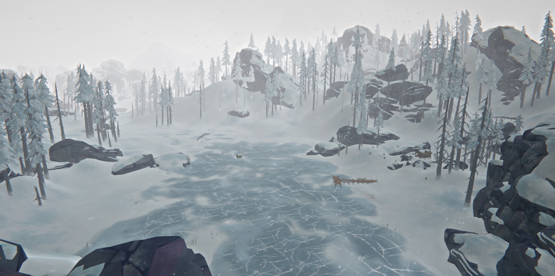 Cystal lake from above. Mountaineer's Hut is visible on the left, along with the fishing hut in the center.