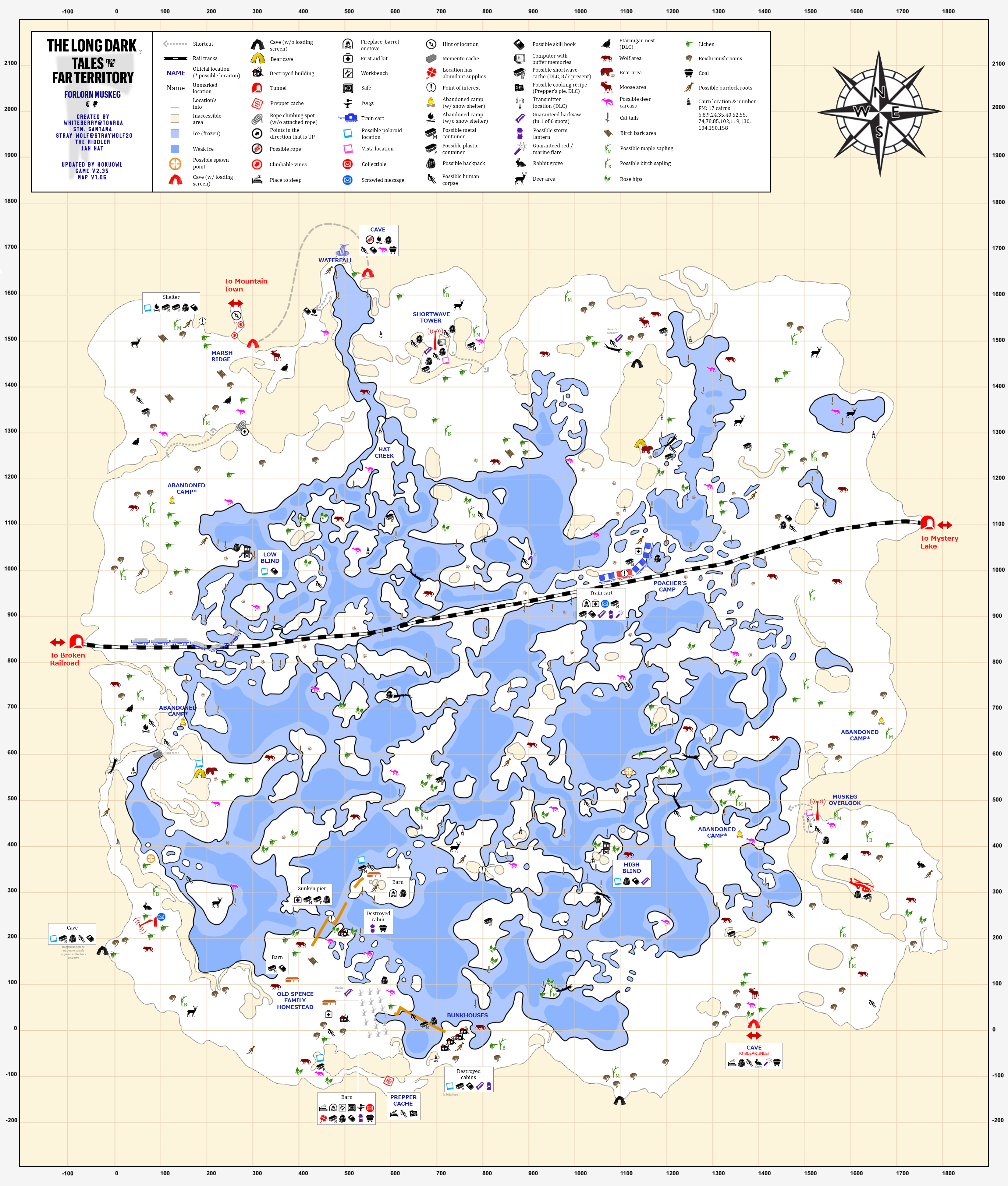 A detailed map of Forlorn Muskeg made by HokuOwl (Interloper/Misery edition, includes spoilers)