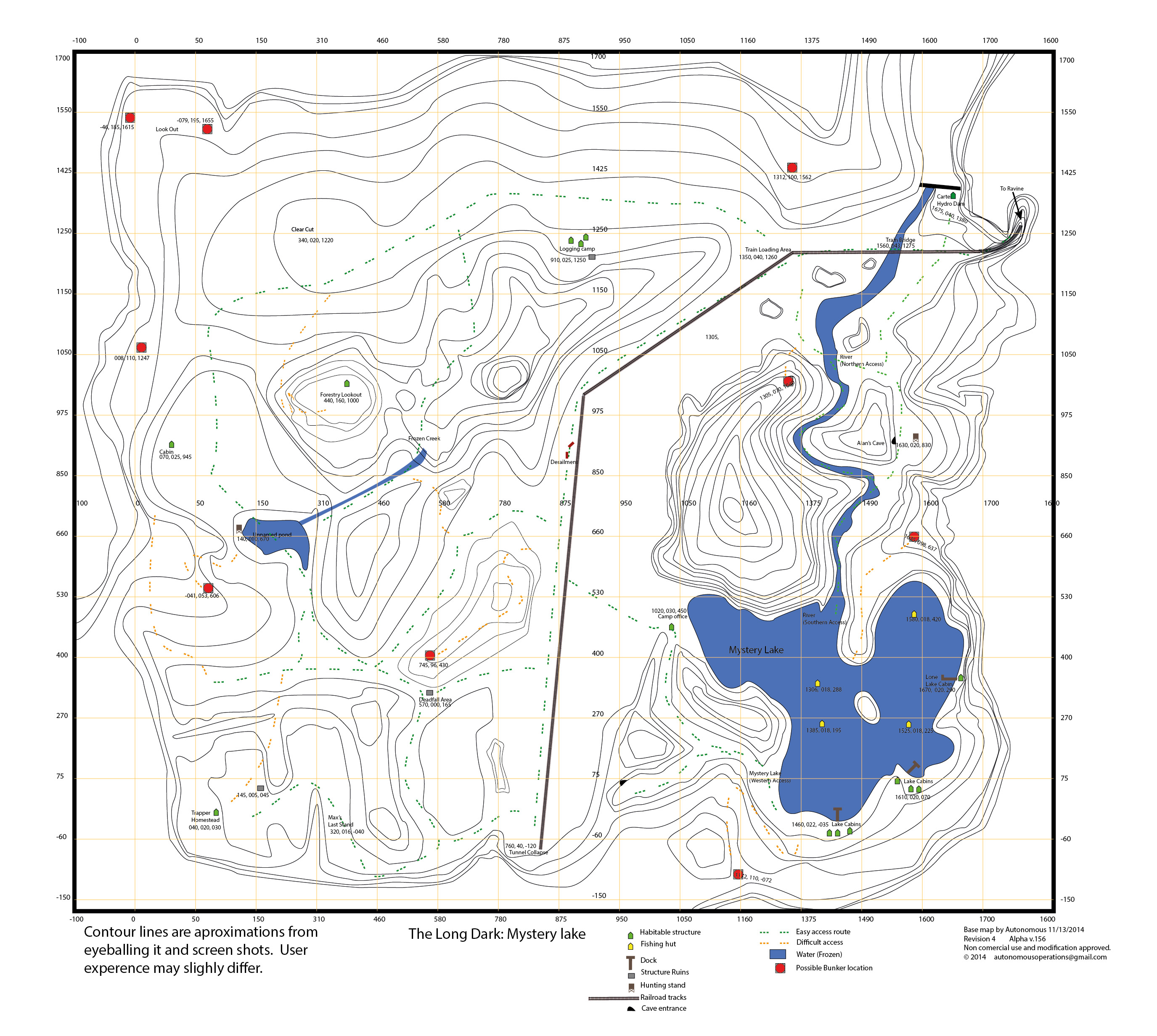 A topographic map of Mystery Lake by Sniper Bob.