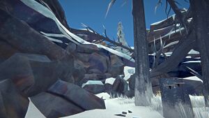 The area is a rockfall that blocks a section of the Trans-Island Railway Line near the Mountaineering Rope spot and passenger train car near Surfeit Trestle. Due to the nature of the rockfall, players are forced to travel through the Platelayer's Shortcut to get to the other side of the railroad it blocks. Once on the other side of the cave system, it can be accessed by following the railroad south and simply walking over as a one way shortcut, similar to the Landslide in the Broken Railroad region. There is no loot or shelter here, aside from the passenger train car on the other side.