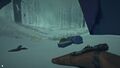 On Marsh Ridge, there is a shallow cave where relatively good loot (e.g., food, a bedroll, a snare and even a revolver, possibly) may be found. In the area there may also be 2 deer carcasses, rabbits, birch bark and Green Maple Sapling. There is a frozen corpse that can be found in the North-Eastern part of the Ridge that may have a bow lying next to it. It offers a good vantage point of the region. Milton Basin can be reached using a path northwest of the explorable cave, which involves climbing two small cliffs.