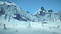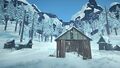 Reishi mushrooms and two frozen deer carcasses can be found near the broken-down buildings. Several rabbits, along with a wolf carcass, can also be found in the field nearby.